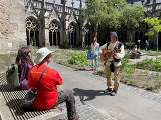 Op deze wandeltocht gaat u met minstreel Maarten langs sfeervolle Middeleeuwse plekjes in de binnenstad van Utrecht. In verhaal en lied brengt minstreel Maarten, begeleid op gitaar, de geschiedenis van Middeleeuws Utrecht tot leven.